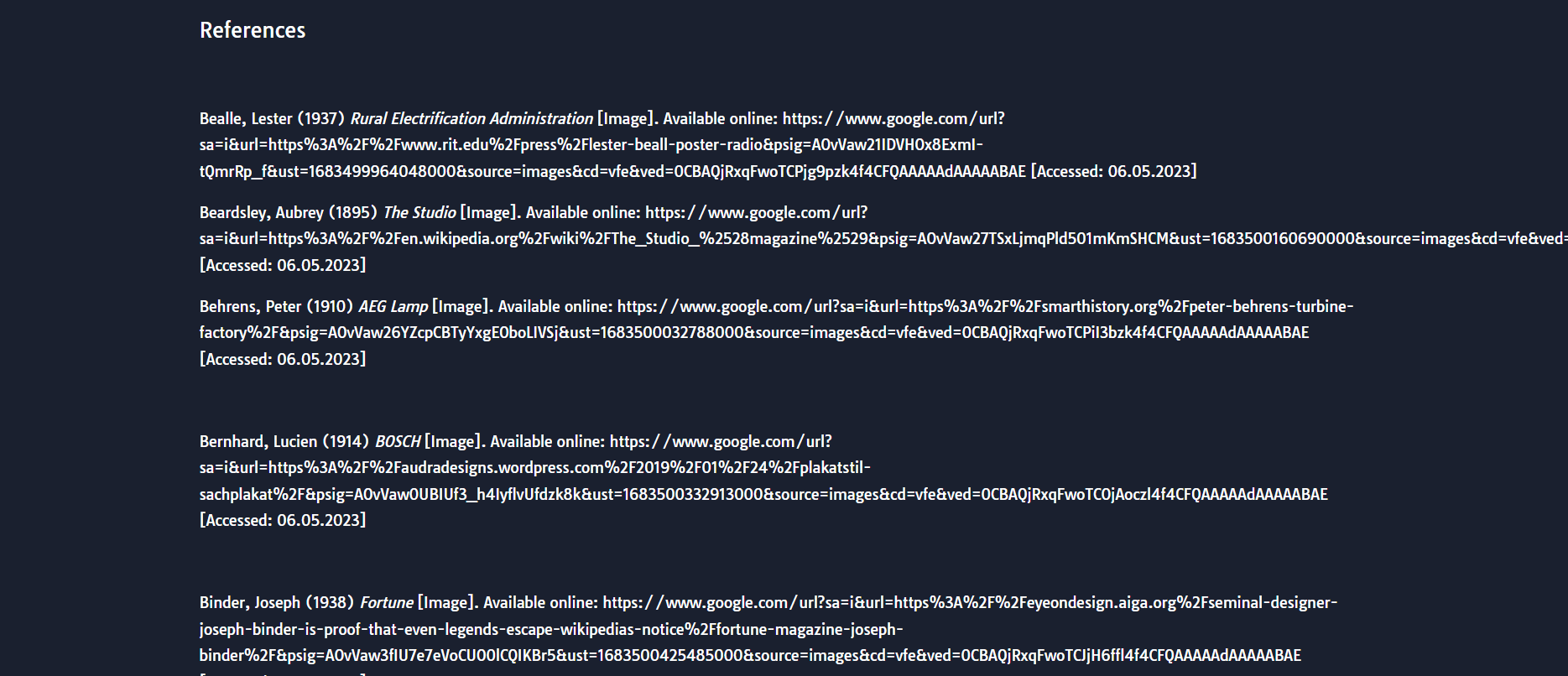 At the end I put all my references. I had found my artworks in a book, but downloaded the images online, so I cited the online websites since I used those downloaded photos.