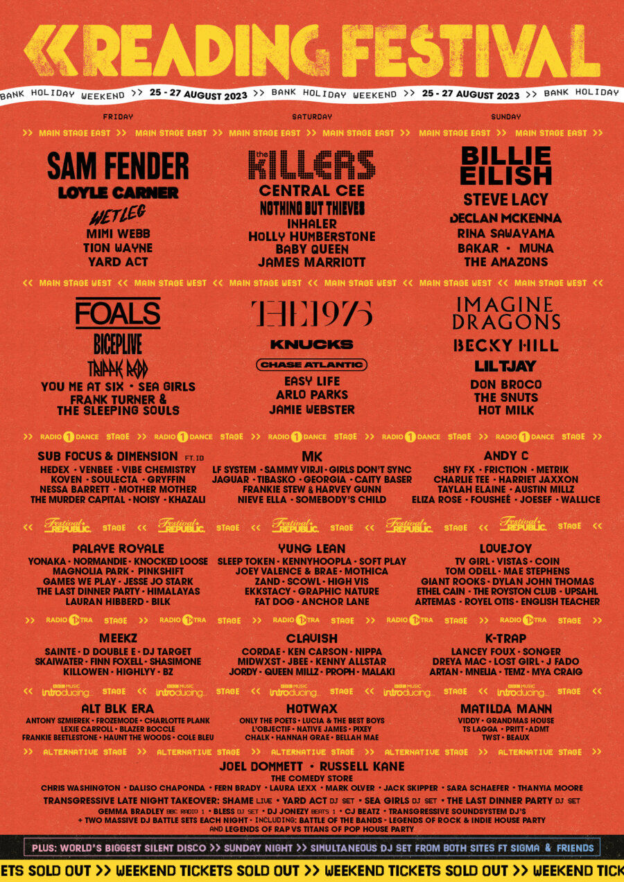 Reading Festival (2023) Reading Festival Line-up Poster [image}. Available online: https://www.google.co.uk/url?sa=i&url=https%3A%2F%2Fwww.newburytoday.co.uk%2Fnews%2Fwhat-to-take-what-not-to-take-what-items-are-banned-at-re-9324274%2F&psig=AOvVaw0iuxmVIo3gae2VMJ-SjMsw&ust=1699300176787000&source=images&cd=vfe&opi=89978449&ved=0CBEQjRxqFwoTCIDRqc3QrYIDFQAAAAAdAAAAABAG [Accessed: 05.11.2023]