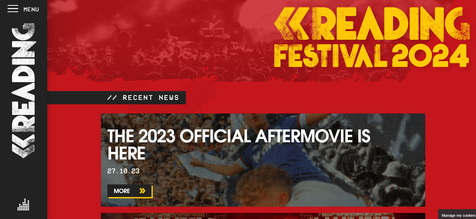 Their website uses a red, yellow, black and white colour scheme. This is iconic to the festival and is something they have used for many years, and they continue to use it in all their advertising campaigns. Their logo is also iconic, with the two arrows and faded texture. They always use images of the festival and use effects such as collage for a gritty effect and to show the spontaneous feel of the festival.