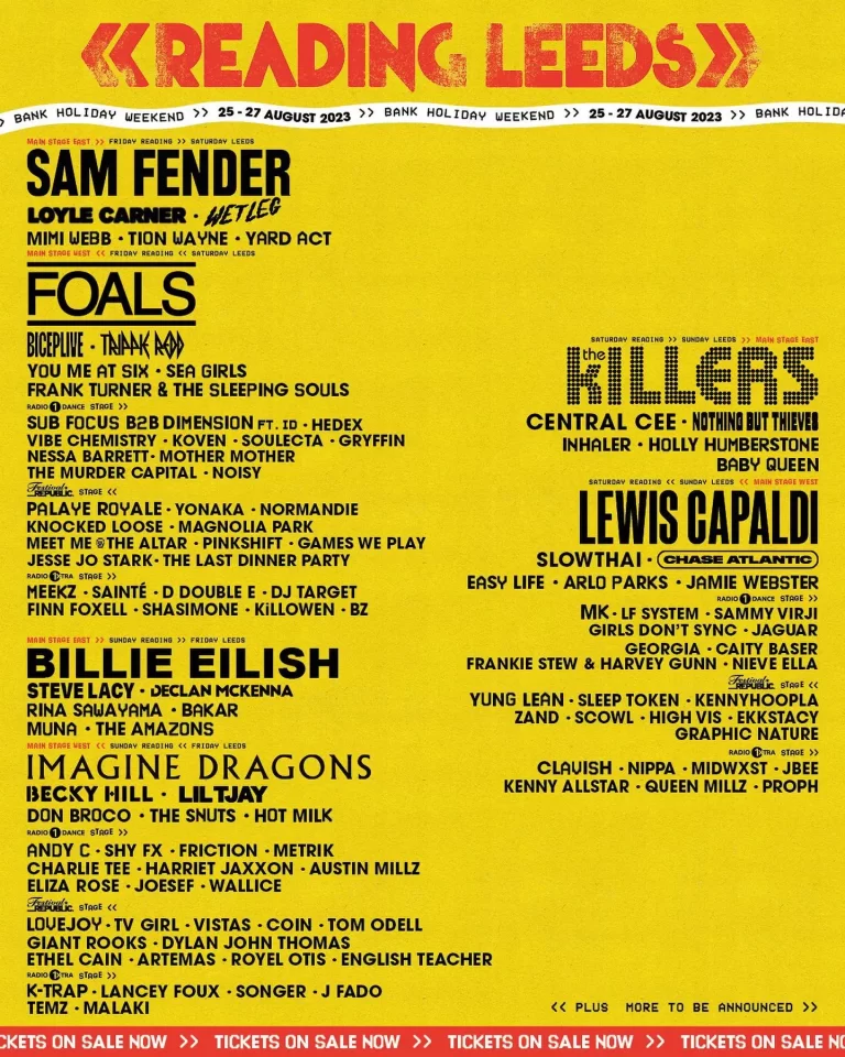 Reading Leeds Festival (2023) Leeds Festival Line-up Poster [Image]. Available online: https://www.google.co.uk/url?sa=i&url=https%3A%2F%2Fclunkmag.com%2Freading-leeds-2023-line-up-yard-act-sleep-token-and-arlo-parks-announced-in-second-wave-with-over-70-names-added%2F&psig=AOvVaw2Ota7VPrCBz0Mitv6Gjqjf&ust=1699300318865000&source=images&cd=vfe&opi=89978449&ved=0CBEQjRxqFwoTCJC_-pDRrYIDFQAAAAAdAAAAABAE [Accessed: 05.11.2023]