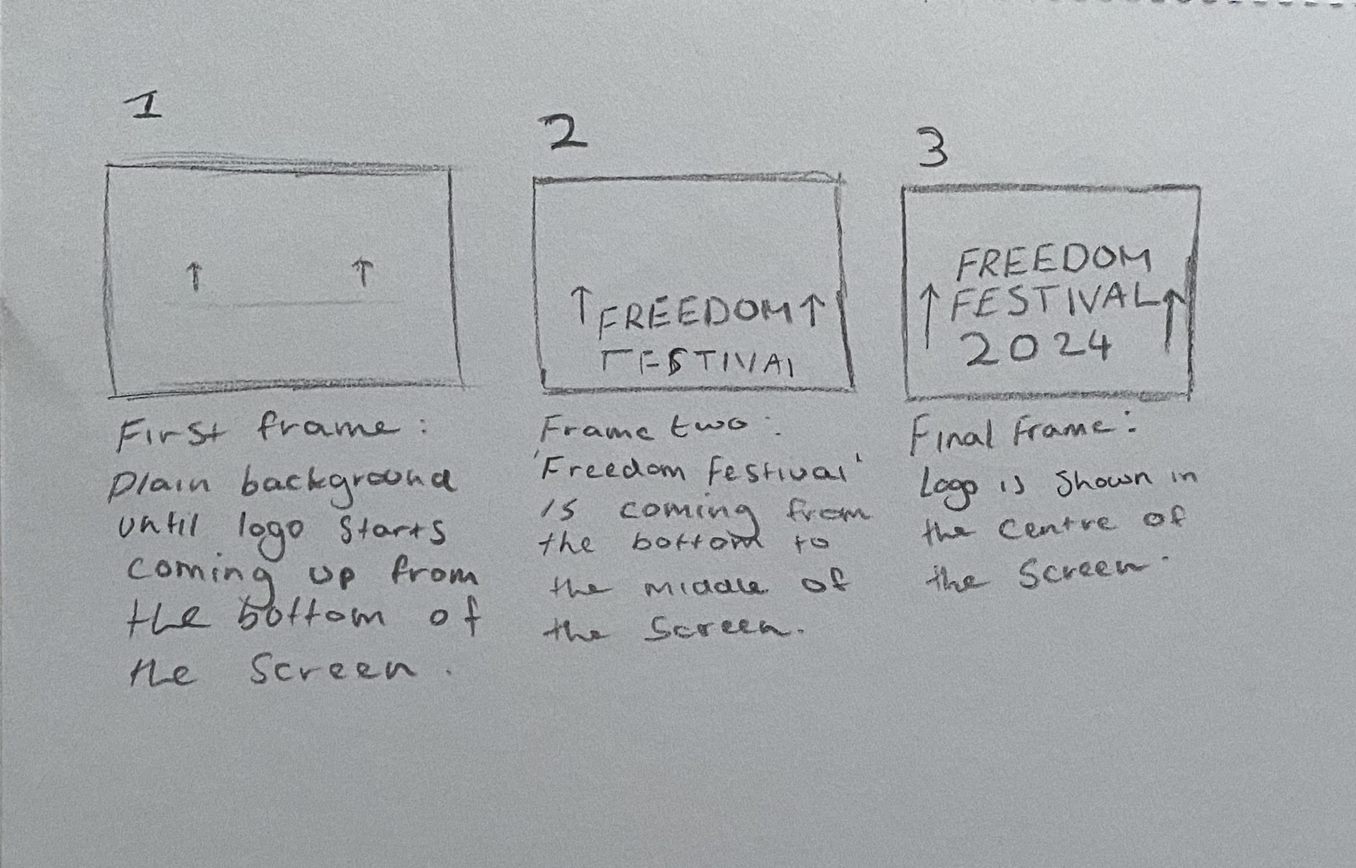 Here is a simple storyboard detailing an animation for my logo. The sequence is short but adds dynamism to the logo by having it float into the frame before settling into position. I have chosen to animate my logo because it could be an animation that happens when entering the website, creating fluidity and intrigue in the user as soon as they are on the website.