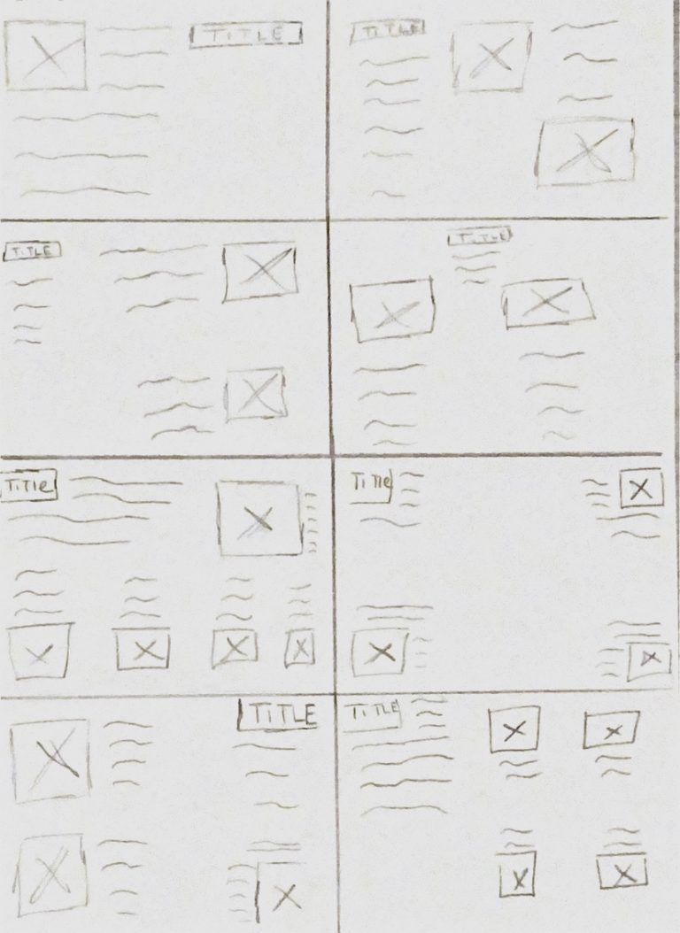 This was an earlier concept that I came up with initially but decided didn’t work very well for the purpose of this project. It is a paper wireframe for both mobile and web that I never developed further since it wasn’t appropriate for the style I was aiming towards. Previously, my header was split in half for a vertical image and vertical text box to be beside each other, but after reflecting on this I thought it may not give the best first impression to users if they are welcomed with a large text block. I eventually changed this in my later designs, by having the image be the focal point of the header and the text smaller and more concise.