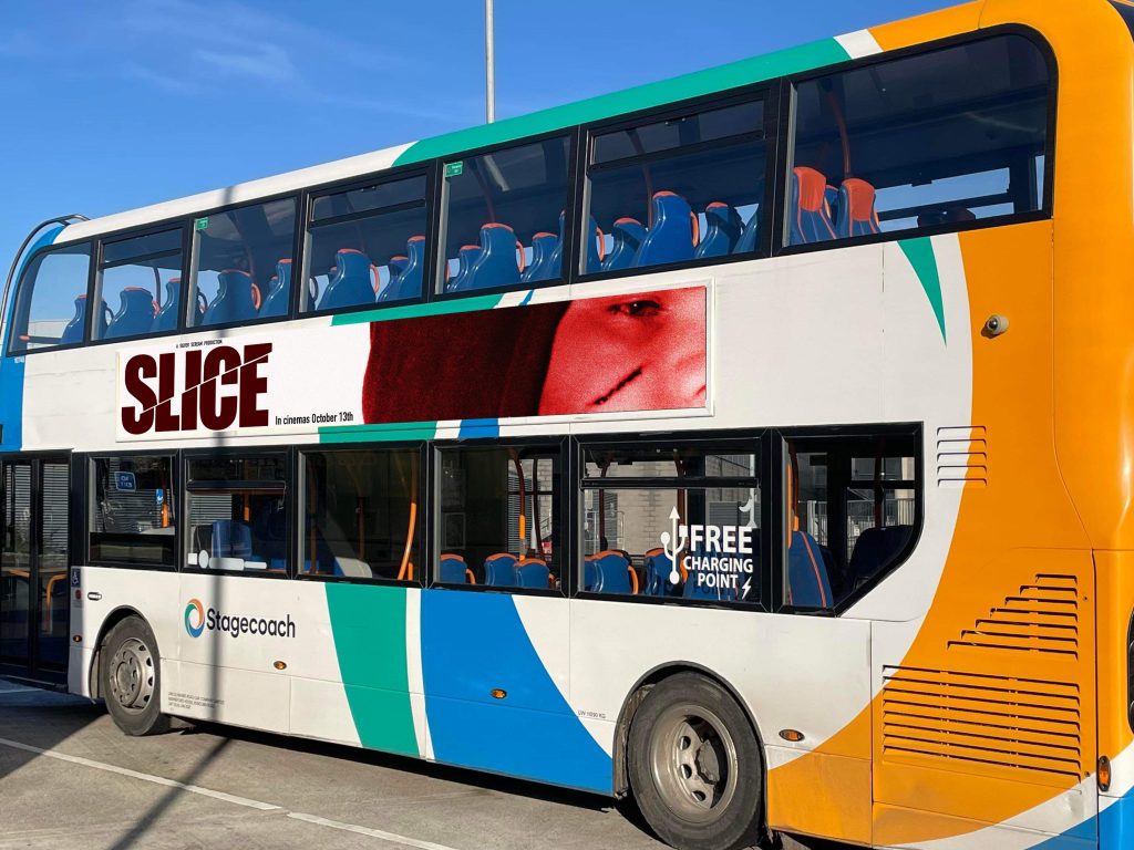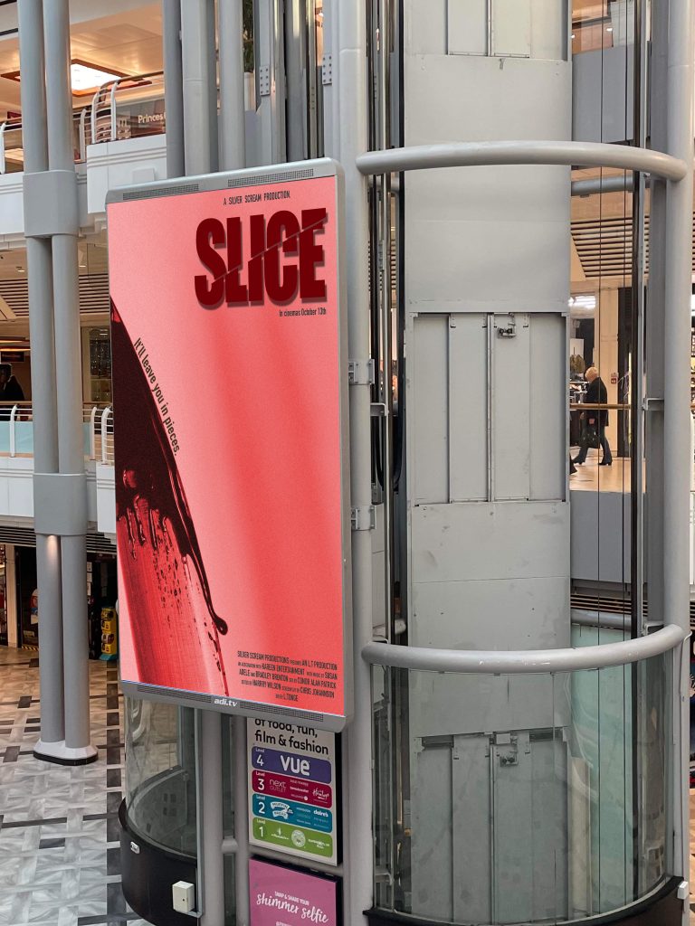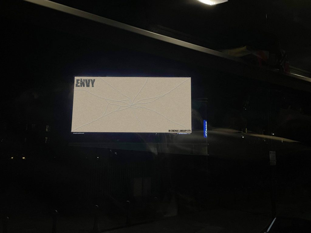I decided to make a portrait oriented poster. I made this for the show ‘Moon Knight’. I began by taking a still from the show and cutting the characters out, along with the desert sand. I used a gradient map and colourised the images blue. I placed this image at the bottom of the frame, and added three squares running down the left hand side – showing some of the main characters of the show. I then added a Moon Knight quote on the opposite side, but turned the opacity down so it didn’t disrupt the balance. For the final line, I brought the tracking down so ‘I am Moon Knight’ was emphasised and shown as important. I then added noise to make it feel more brutalist and ‘gritty’.